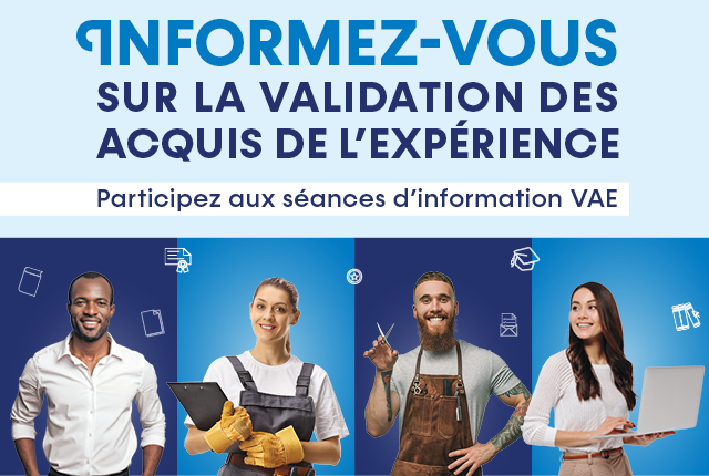 29.09.2025 Weiderbildung Séance d'information – La validation des acquis de l'expérience (VAE) Pour en savoir plus sur la voie supplémentaire d'accès aux diplômes, participez à la séance d’information. | Méi doriwwer Séance d'information – La validation des acquis de l'expérience (VAE)
